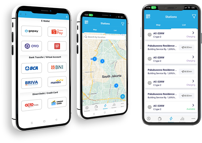 PARKING+ menawarkan EV Charger (SPKLU) baik untuk mobil listrik, motor listrik & bus listrik - dari kecepatan medium, fast, sampai ultra fast charging. Dengan aplikasi yang tercanggih dilengkapi dengan 10 payment channels terpopular termasuk Gopay, Ovo, Linkaja, VA, CC. Aplikasi juga dilengkapi dengan status charger online dan fitur AI yang membantu customer & mitra properti melihat operational secara transparan dan realtime.